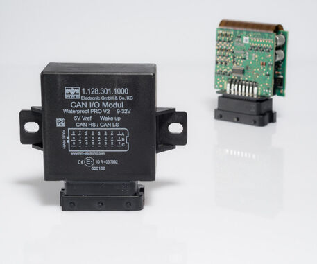 Die wasserdichte CAN I/O SPS WP PRO V2 mit 16 I/Os überzeugt durch die vielfältigen Einsatzmöglichkeiten in zahlreichen Steuerungsapplikationen. Sie bietet neben acht I/Os, die als Ein- oder Ausgänge konfiguriert werden können, sechs analoge und zwei digitale Eingänge. Die CAN-Steuerung verfügt zudem über integrierte Schutzdioden zur Begrenzung der durch die induktive Lasten erzeugten Freilaufspannung.