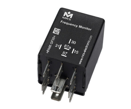 Der Frequenzwächter schaltet Verbraucher bei Über- oder Unterschreiten bestimmter Schwellfrequenz an Klemme 15 ab. Die Frequenzschwellen können zwischen 3 Hz und 1.000 Hz frei gewählt werden. Verzögerungszeiten sind ebenfalls möglich. Gehäuseformen finden Sie im Kapitel Gehäuse und Grundkörper.